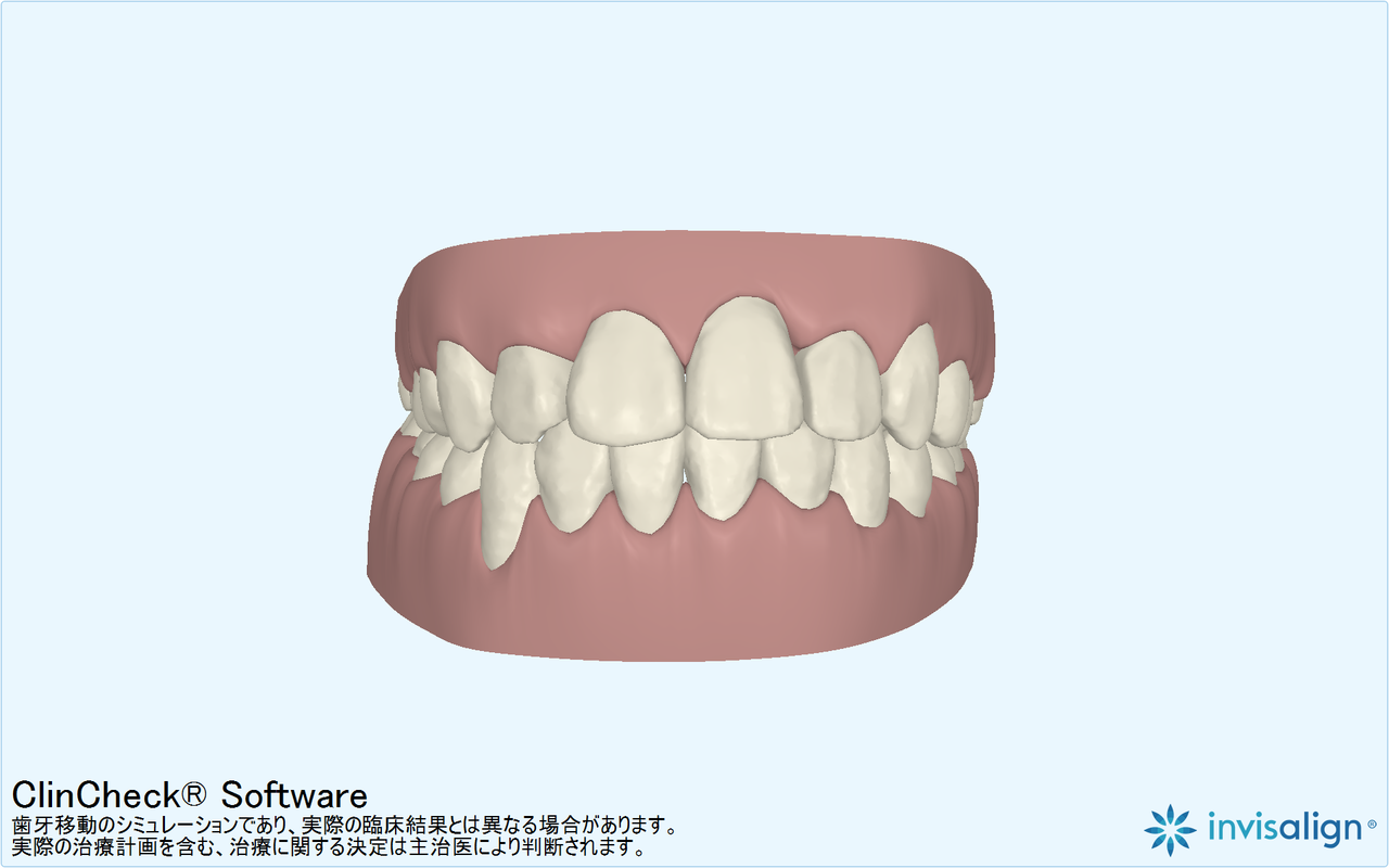 マウスピース矯正では、術前・術後のシュミレーションができるため、どれくらいの期間で、どれくらい歯が動くのか、イメージがつきやすいため、矯正治療を決心されました。